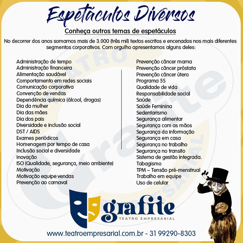 Cada espetáculo é um convite ao conhecimento. Leve, descontraído e profundo, com alto poder de absorção e informações confiáveis.